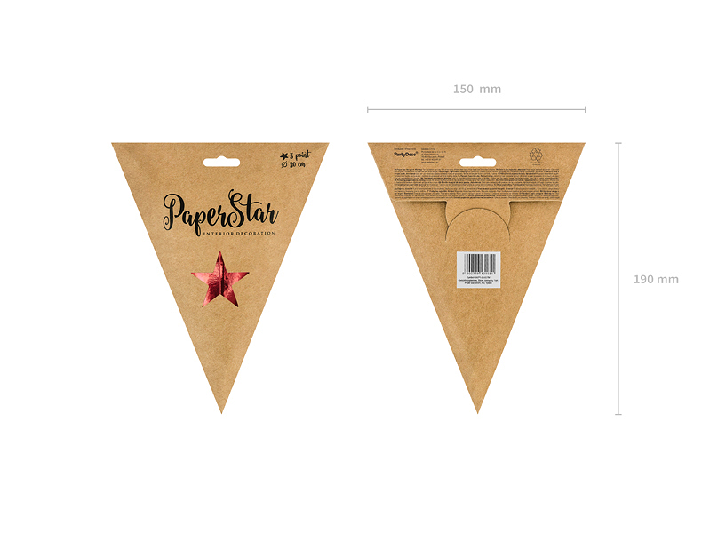 Paper star, five point, made of mirror red paper, with silver twine, diameter approx. 30 cm. Do it yourself product. 1 pkt / 1 pc. symbol: GWP1-30-007M