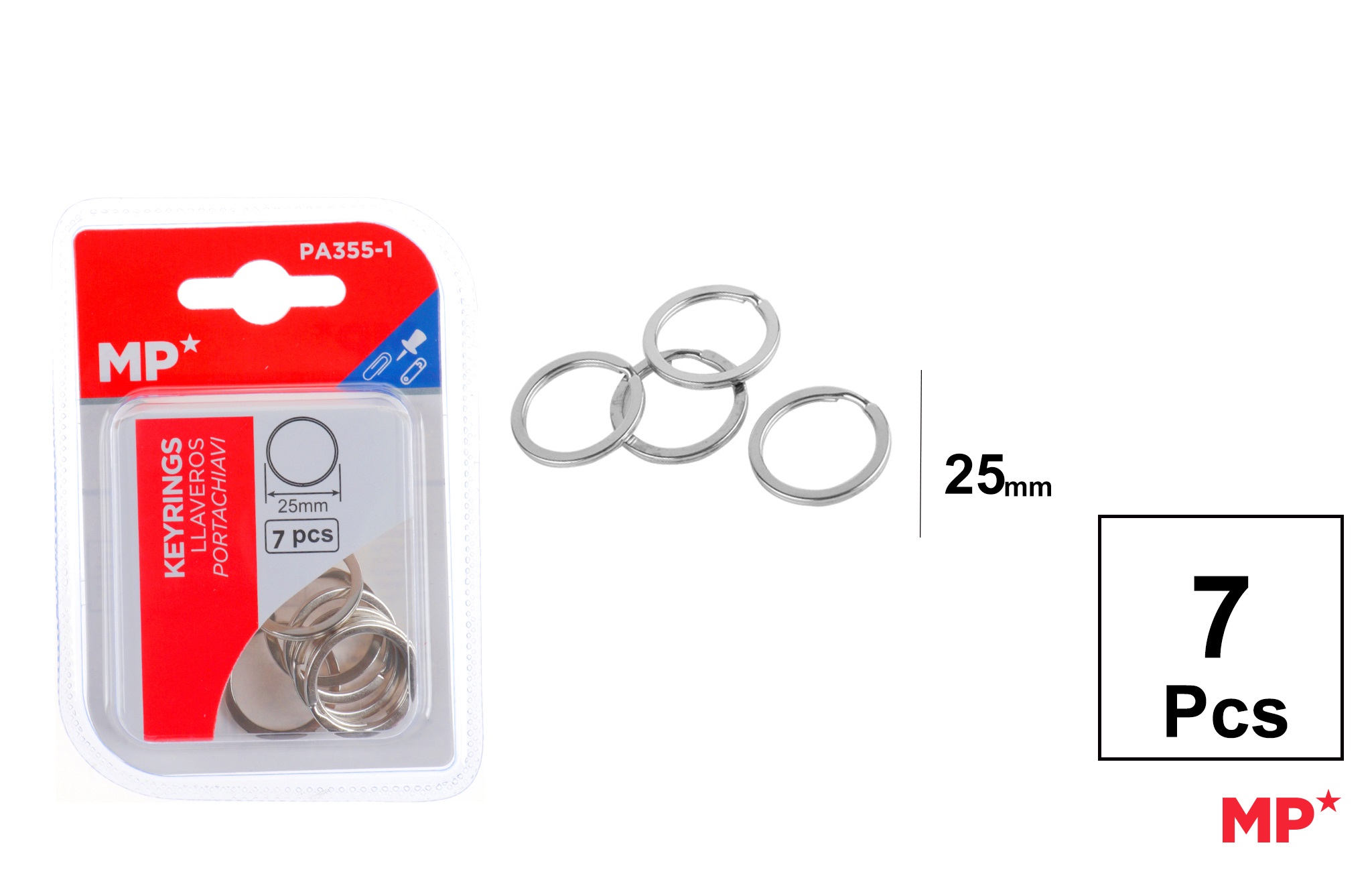 Metal key ring. Measurement: 25 mm diameter. Box of7 units in blister.