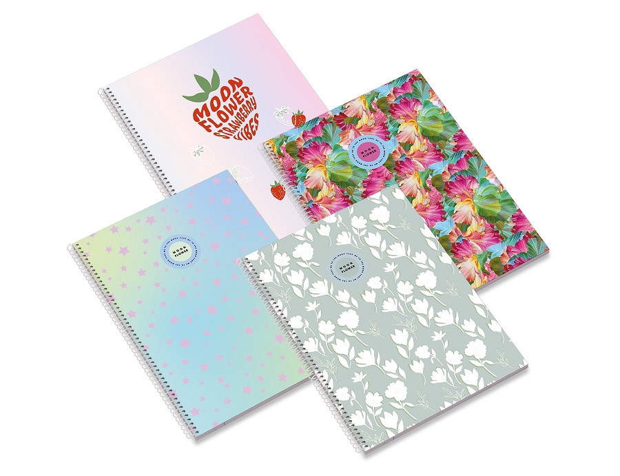 Etichete: format A4, Patratele, 90 g/m², 80 pagini, Copertă tare, Spiră laterală, Design Teen Moonflower, caiet a4