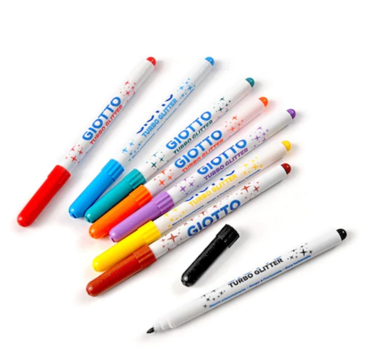 Setul de carioci GIOTTO dispunde cerneala speciala cu sclipici.
