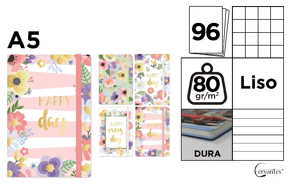 Descoperiți un carnet de notițe vibrant și practic de la Cervantes, perfect pentru organizarea zilnică, planificare sau pentru a nota idei creative. Designul floral Happy Day / Happy Every Day adaugă o notă de prospețime și optimism fiecărei zile.