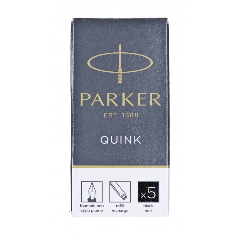 Patroane mari pentru stilou, de culoare neagra Patroanele Parker Quink se potrivesc la orice stilou Parker, iar stilourile Parker pot fi reincarcate doar cu patroane Parker Quink. Patroanele se livreaza ambalate in cutie, cate 5 patroane/cutie.