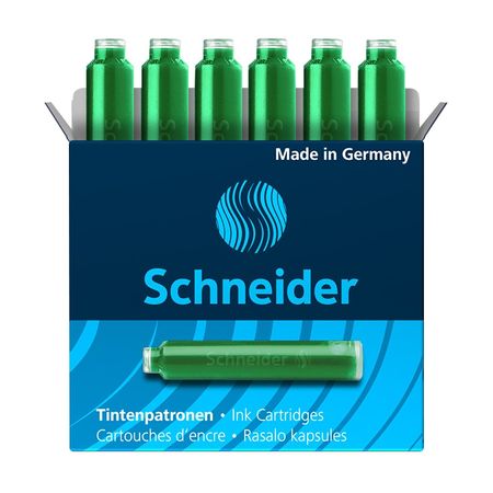Cutie cu 6 rezerve de cerneala Schneider, standard, sigilate cu bila. Cerneala neagra nu poate fi stearsa cu picul. Patroanele Schneider se potrivesc stilourilor si rollerelor care folosesc acest sistem de incarcare.