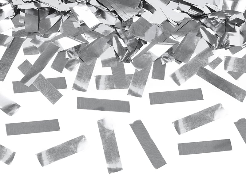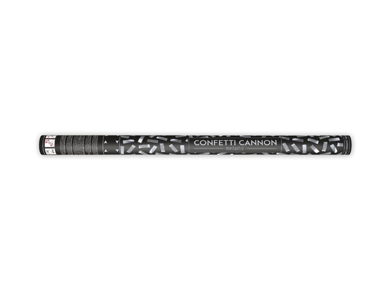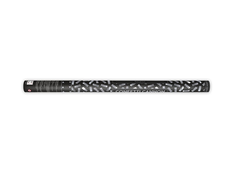Confetti cannon shooting out metallic confetti, silver, length 80 centimeters.