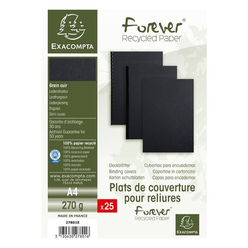 Etichete: Stil, exacompta, sustenabilitate, Prezentare, Lux, IMITAȚIE PIELE, 25/set, Sisteme de legare, Foi de copertă, Material reciclat, Linia Exacompta Forever, Rapoarte de afaceri, 27801E/27809E, Seriozitate, Aspect rafinat., Profesionalism, coperta carton, negru, A4, eleganță