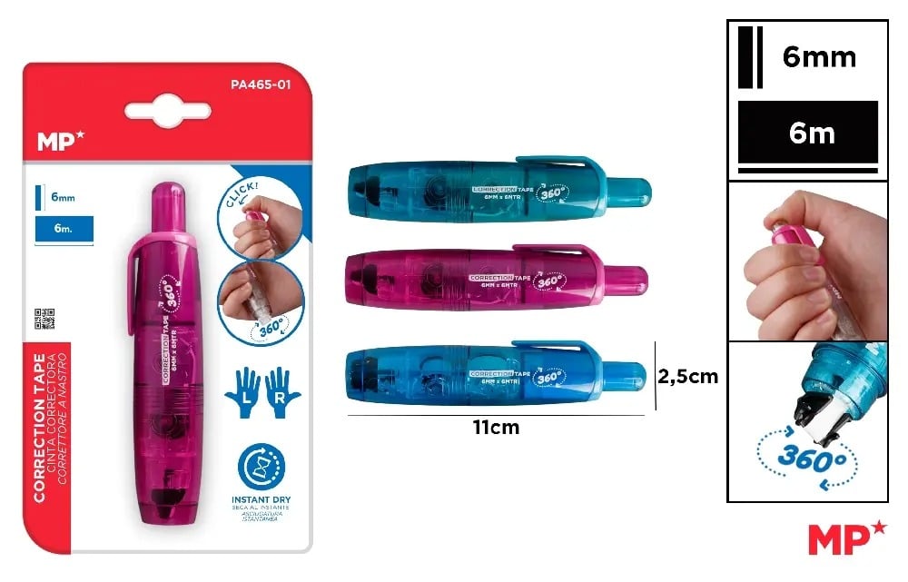 Etichete: școală, capacitate mare, IPB, corectare laterală, Grip cauciuc, PA416, scris imediat, Non-toxic, Birou, banda corectoare