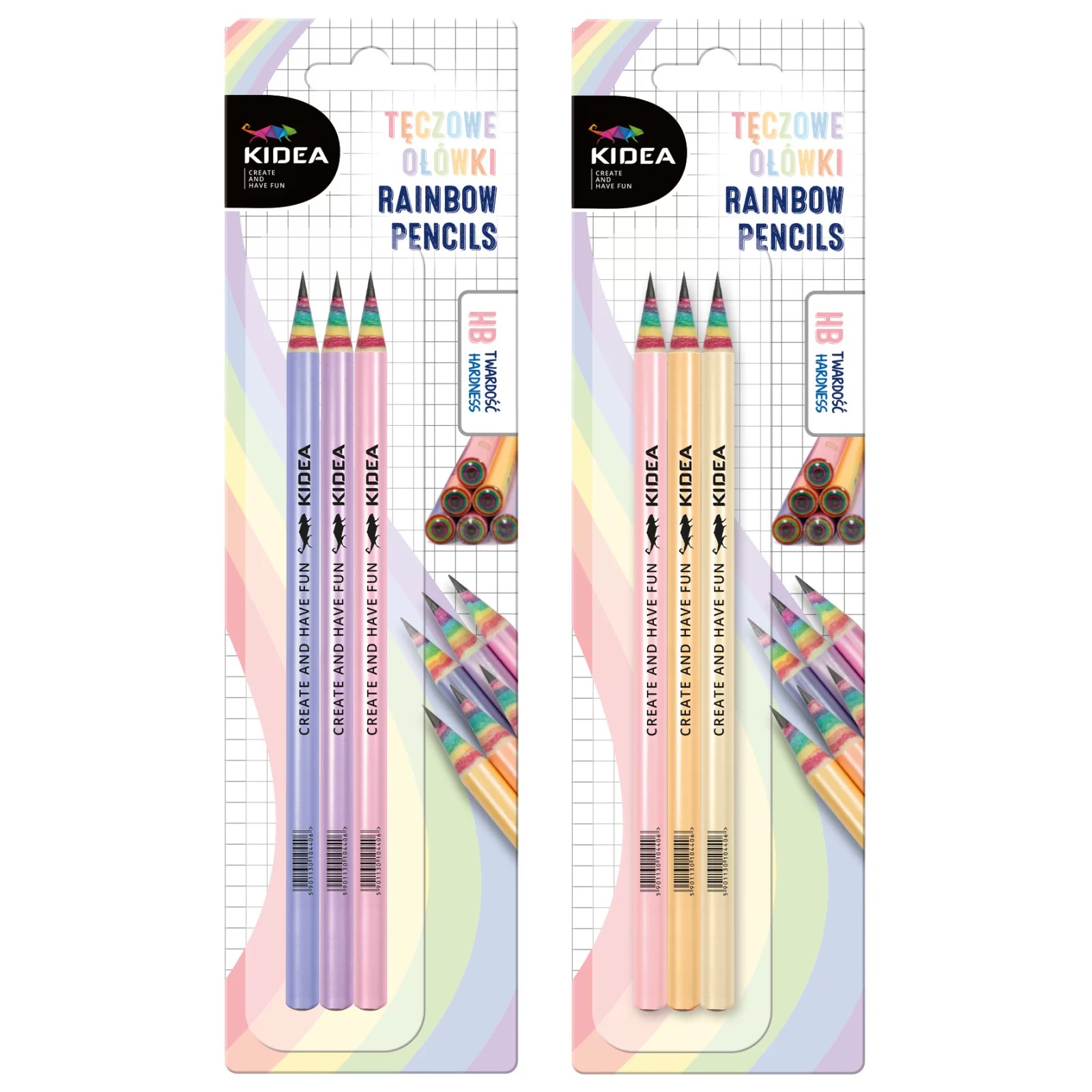 Adaugă o notă de culoare și distracție rechizitelor tale cu setul de 3 creioane triungulare HB Curcubeu de la KIDEA!