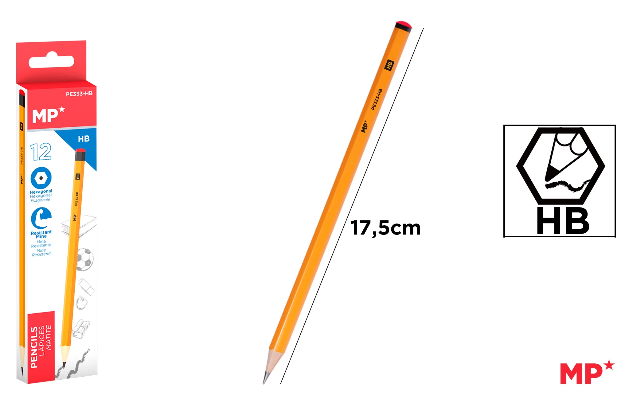 Creion din grafit cu corp din lemn lacuit in galben Corp hexagonal.