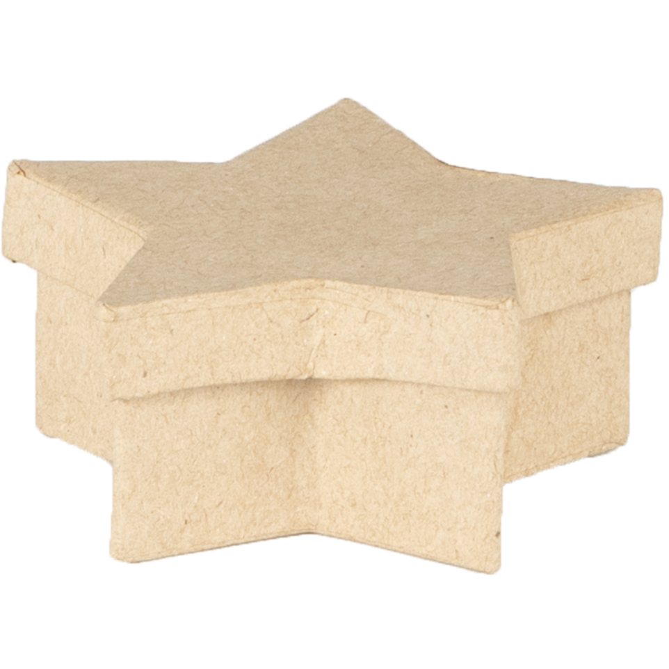 Această mini-cutie în formă de stea, realizată din papier-mâché, este un suport creativ versatil, perfect pentru a fi decorat după bunul plac prin diverse tehnici (DIY), cum ar fi Décopatch, pictură sau sclipici.