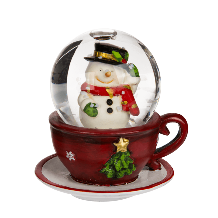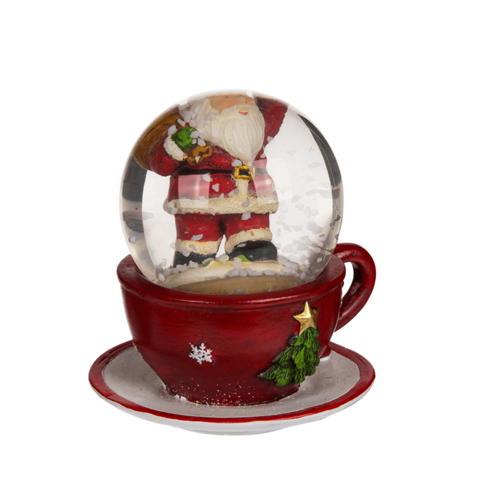 Acest glob de zăpadă aduce o notă de magie și sărbătoare, fiind special prin faptul că este montat pe o bază ce imită o ceașcă roșie de cafea. Globul conține o figurină tematică de Crăciun și sclipici fin care plutește atunci când este agitat, creând un efect de "zăpadă". Este o decorațiune festivă minunată și un cadou încântător.