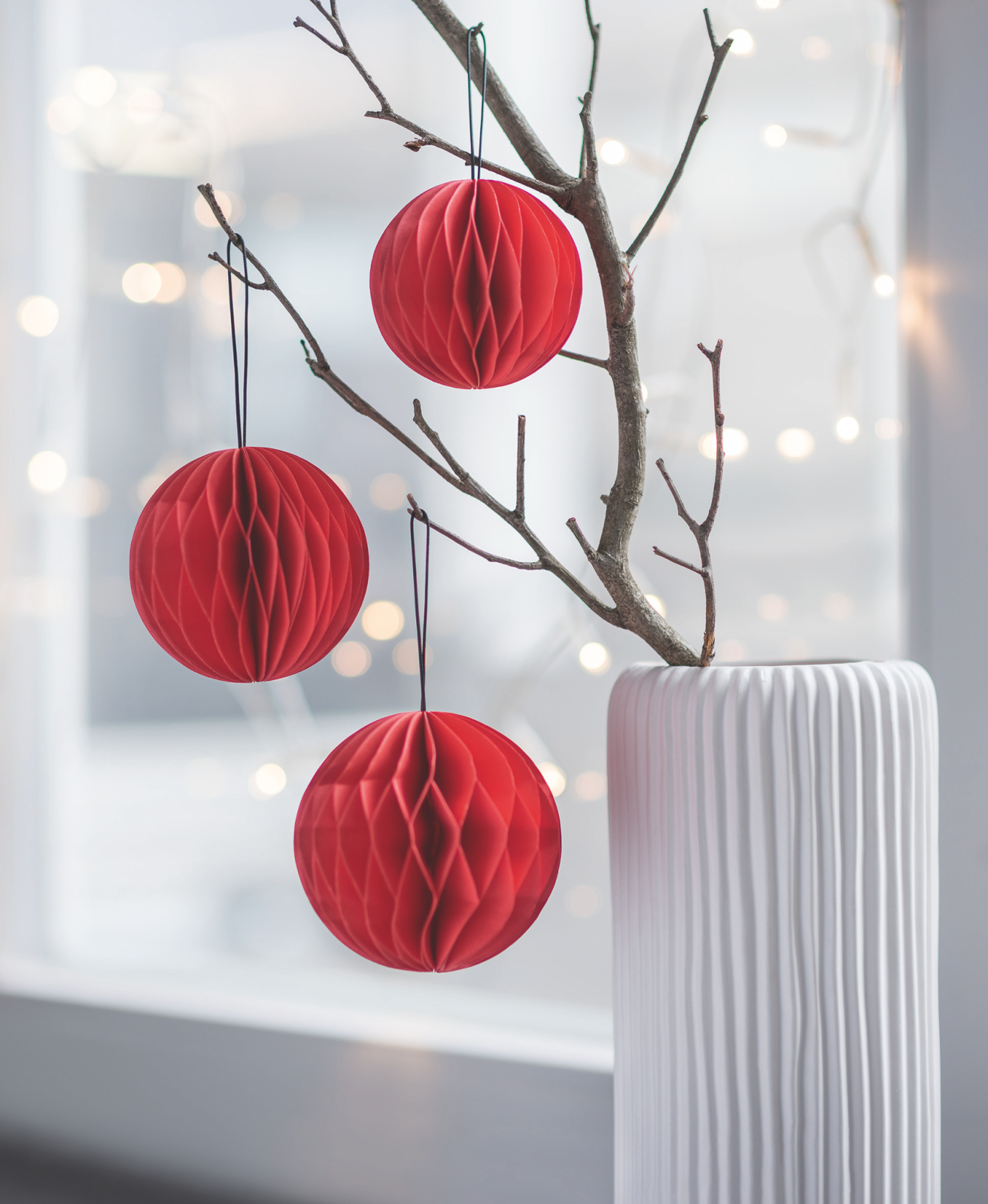 Acest set de decorațiuni din hârtie tip fagure (Honeycomb Ball Set) în formă rotundă clasică oferă un impact cromatic puternic, ideal pentru a crea o atmosferă vibrantă și festivă. Culoarea roșu intens este perfectă pentru a decora petreceri, evenimente de Crăciun sau aniversări, adăugând volum și textură. Bilele vin în trei dimensiuni asortate și sunt concepute pentru a fi ușor de montat și reutilizat.