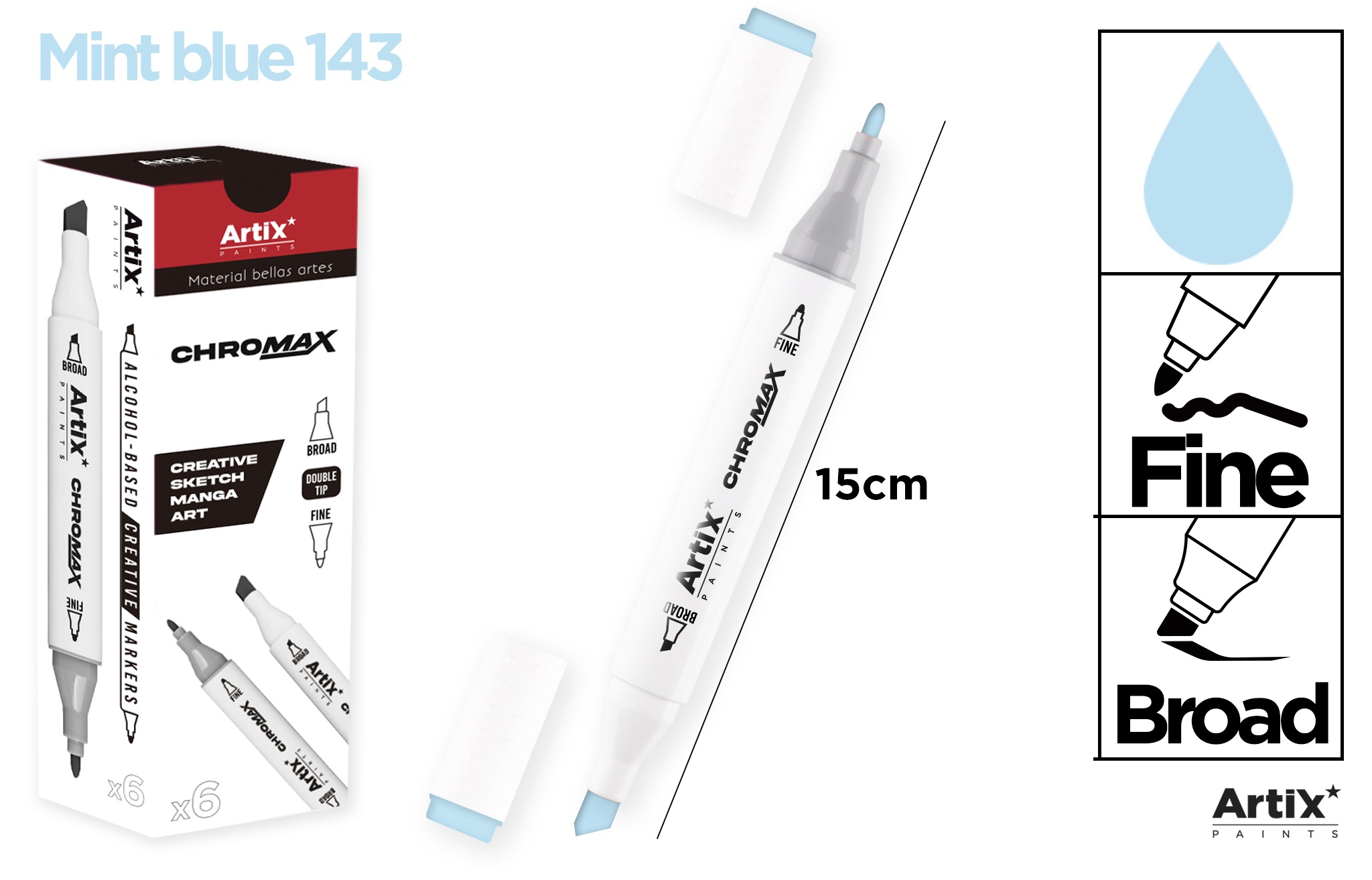 Creative marker with double tip and alcohol-basedink.Plastic body. 1 mm fine tip and 2-5 mm chiseltipfor precise lines. Ideal for making creativedrawings,sketches, manga, comics and any pencreation.Perfect for hobby artists, designers, andanycreative use. Wide range of colours to createanydesign.