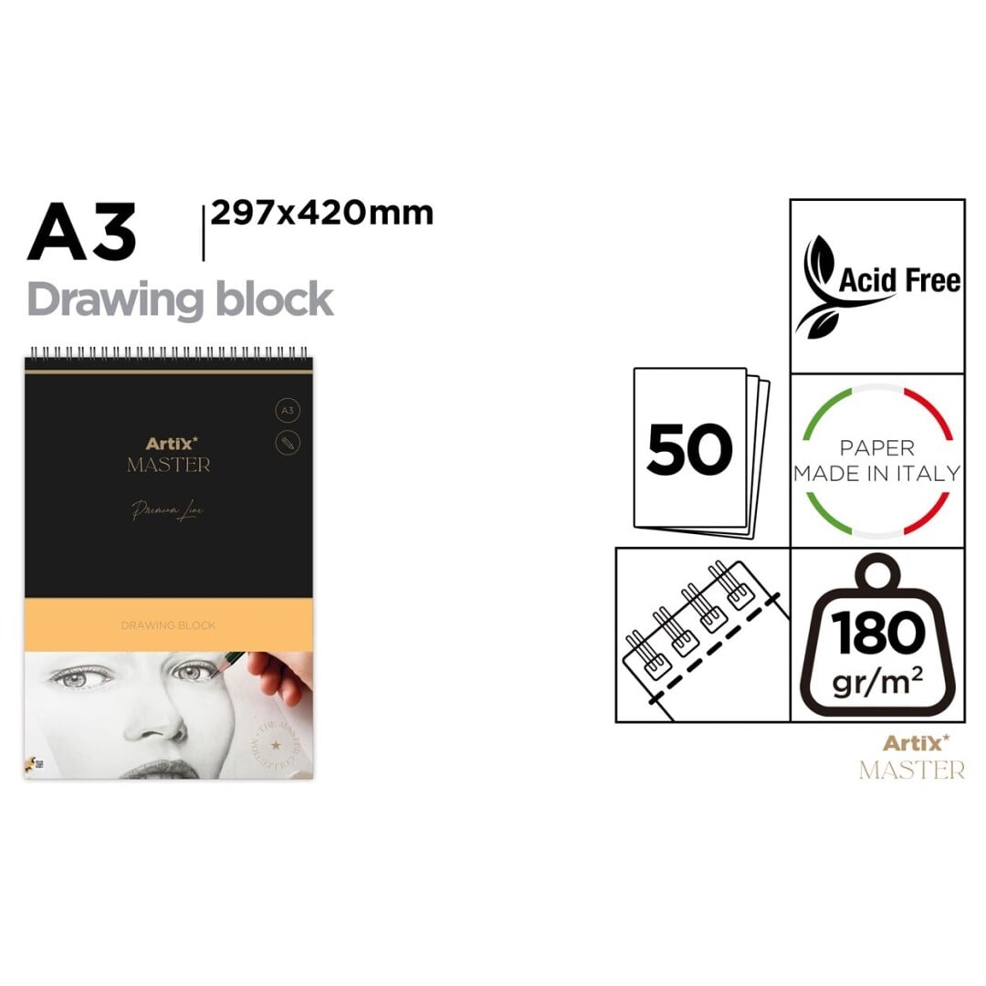Cu dimensiuni A3, acest bloc vă oferă spațiu generos pentru a vă exprima creativitatea și a crea opere impresionante.