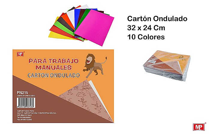 Corrugated cardboard block ideal for crafts andschooluse, to decorate, bind, make figures,covers,dividers, etc. Block of 10 sheets inassortedcolours. Size: 320 x 240mm.
