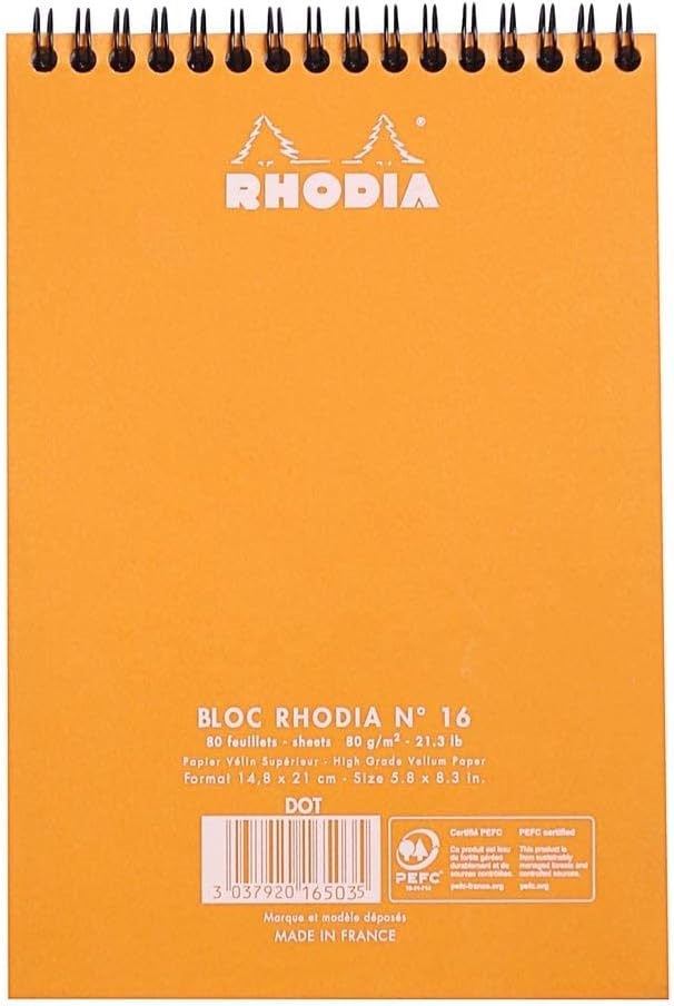 BLOC NOTES A5 SPIRA 80F DOTS ORANGE RHODIA 16503C