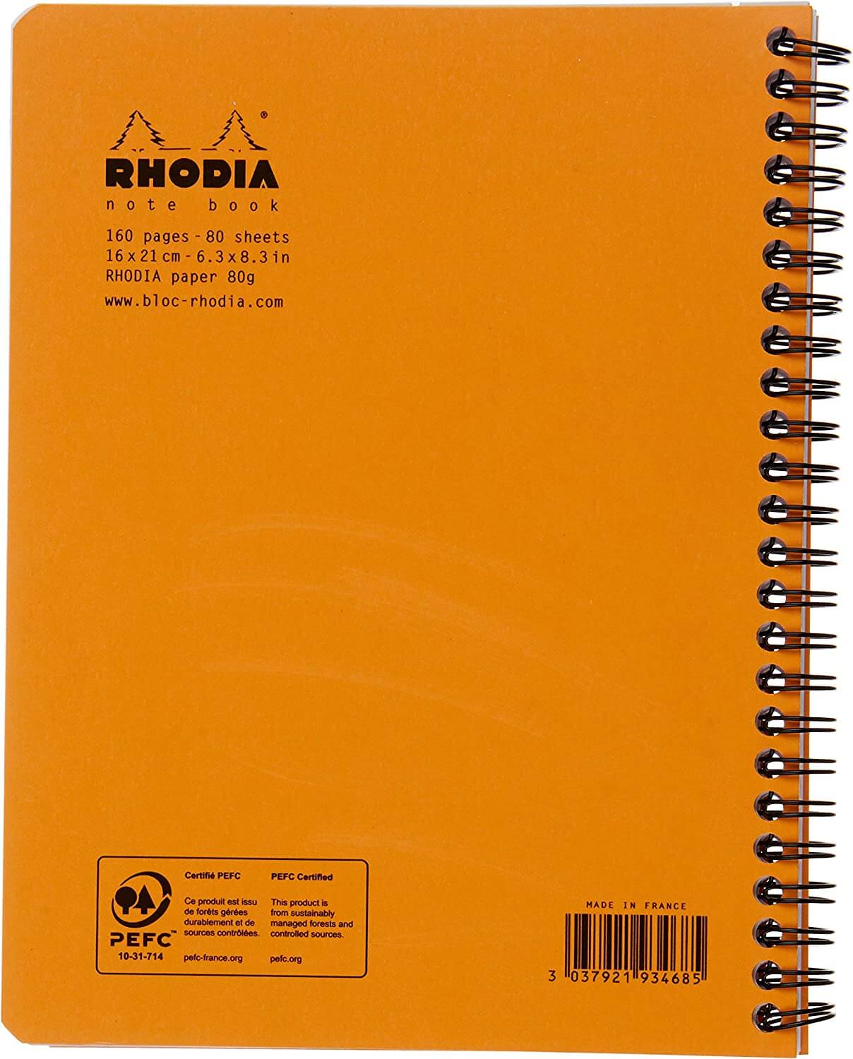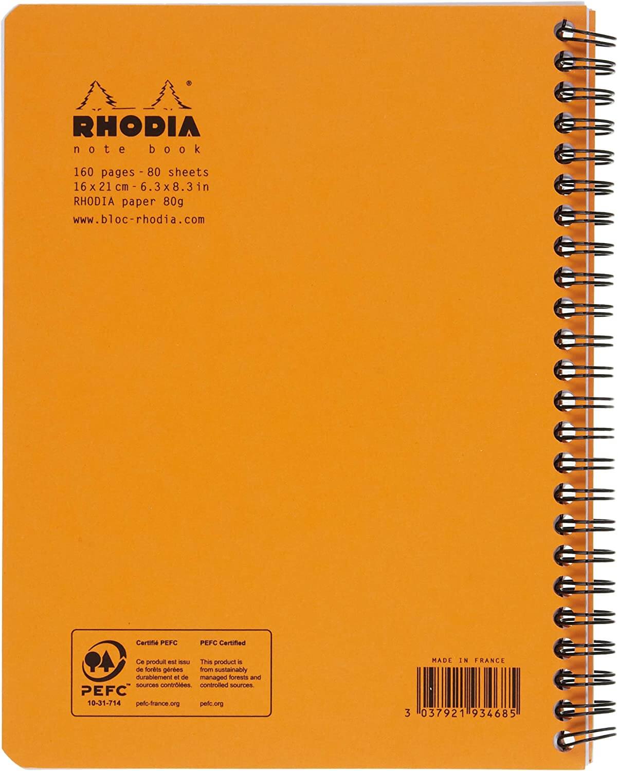 Rhodia Classic Collection Waterproof Notebook with Original Rhodium Cover With double spiral binding, 80 sheets micro-perforated without perforation DIN A5 160 x 210 / ruling: lined Cover colour: orange Edge and head strip