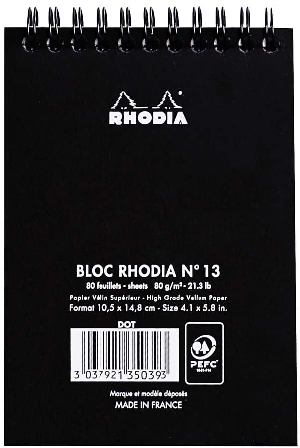 Rhodia Wirebound Notepad, A6, Dot - Black