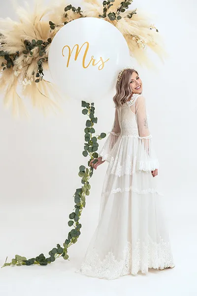 Set de balon Giant Balloon 1m, Mrs, white, OLBON11D-008-019, cu diametrul de aproximativ 1 metru, culoare pastel alb cu imprimeu auriu, perfect pentru decoruri elegante și evenimente speciale.
