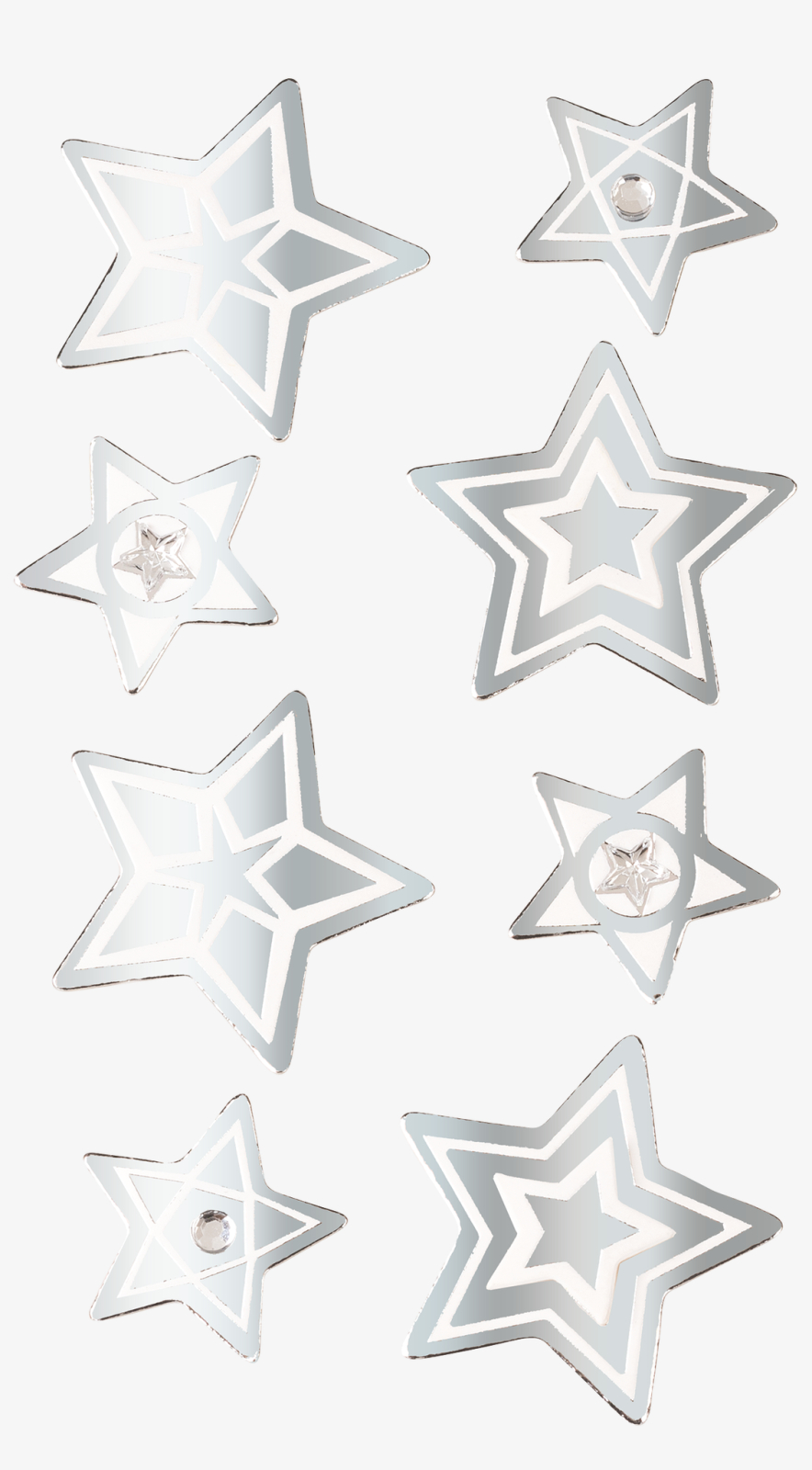 Acest set de stickere decorative aduce un plus de strălucire și eleganță oricărui proiect. Motivul de stele, realizat pe carton în nuanța argintie metalică, este îmbogățit cu detalii de lux, precum folie argintie la cald (hot foil) și pietre acrilice (acrylic stones). Sunt ideale pentru decorarea felicitărilor, cadourilor sau a decorațiunilor de iarnă și evenimente elegante.