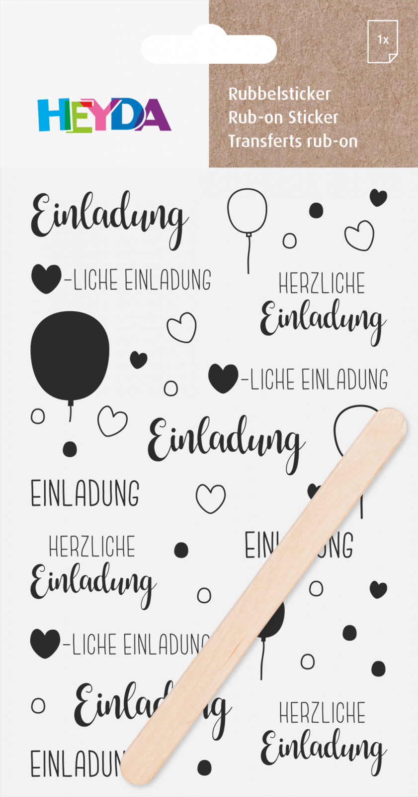 Descoperă setul de stickere transferabile KP Divers Mesaje Negre 10x19cm (3780902) și Rub-on Stickers "Einladung" Heyda 203780902, ideale pentru decorarea hârtiei, cartonului și suprafețelor netede precum sticlă, porțelan și lemn.
