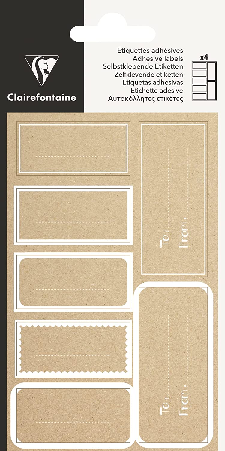 Autocolant cadou Clairefontaine „Rectangle Kraft”, alb din hârtie, autoadeziv, culoare: maro / alb Conținut: 4 coli a câte 7 autocolante fiecare