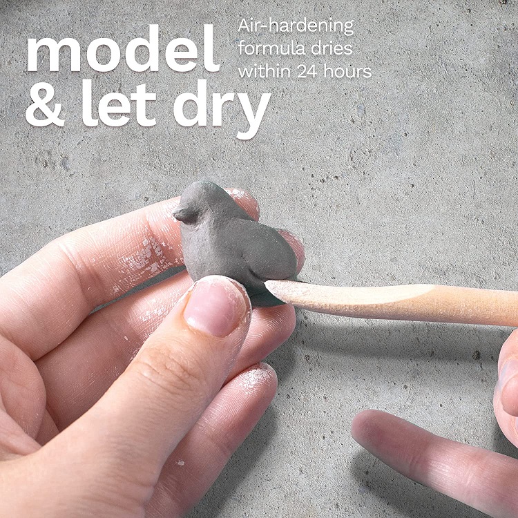 Air-hardening mineral based modelling clay Can be applied to various substrates (wood, cardboard, clay, etc.) Similar to clay, can be modelled immediately, remains dimensionally stable, is air-hardening, so no burning process in the oven necessary Ideal for stone effect sculptures Box contents: 1000 g modelling clay, stone