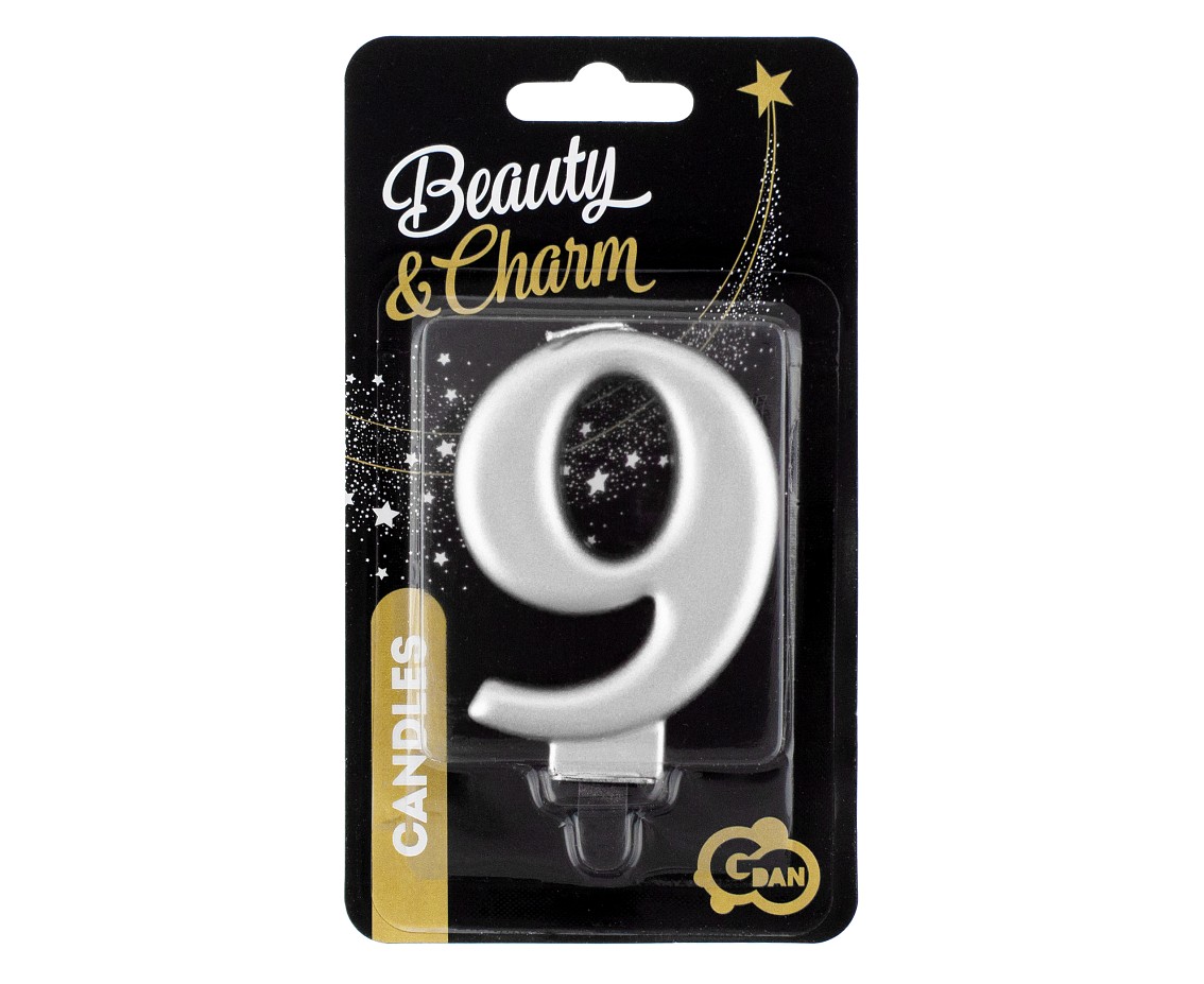 Lumanari Tort Number 9, Metallic Silver, 8cm Pf-Scs9