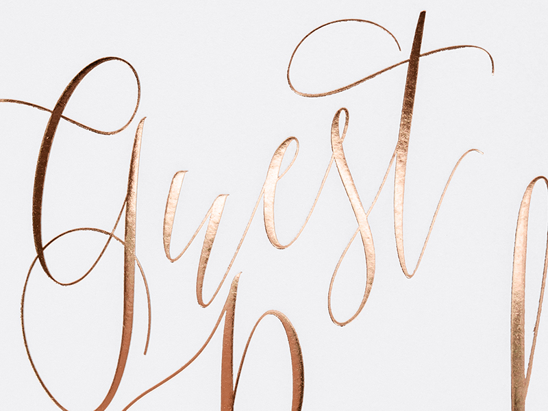 Guest book bound in white paper with a rose gold inscription, size approx. 20 x 24.5 cm 22 pages, without text.