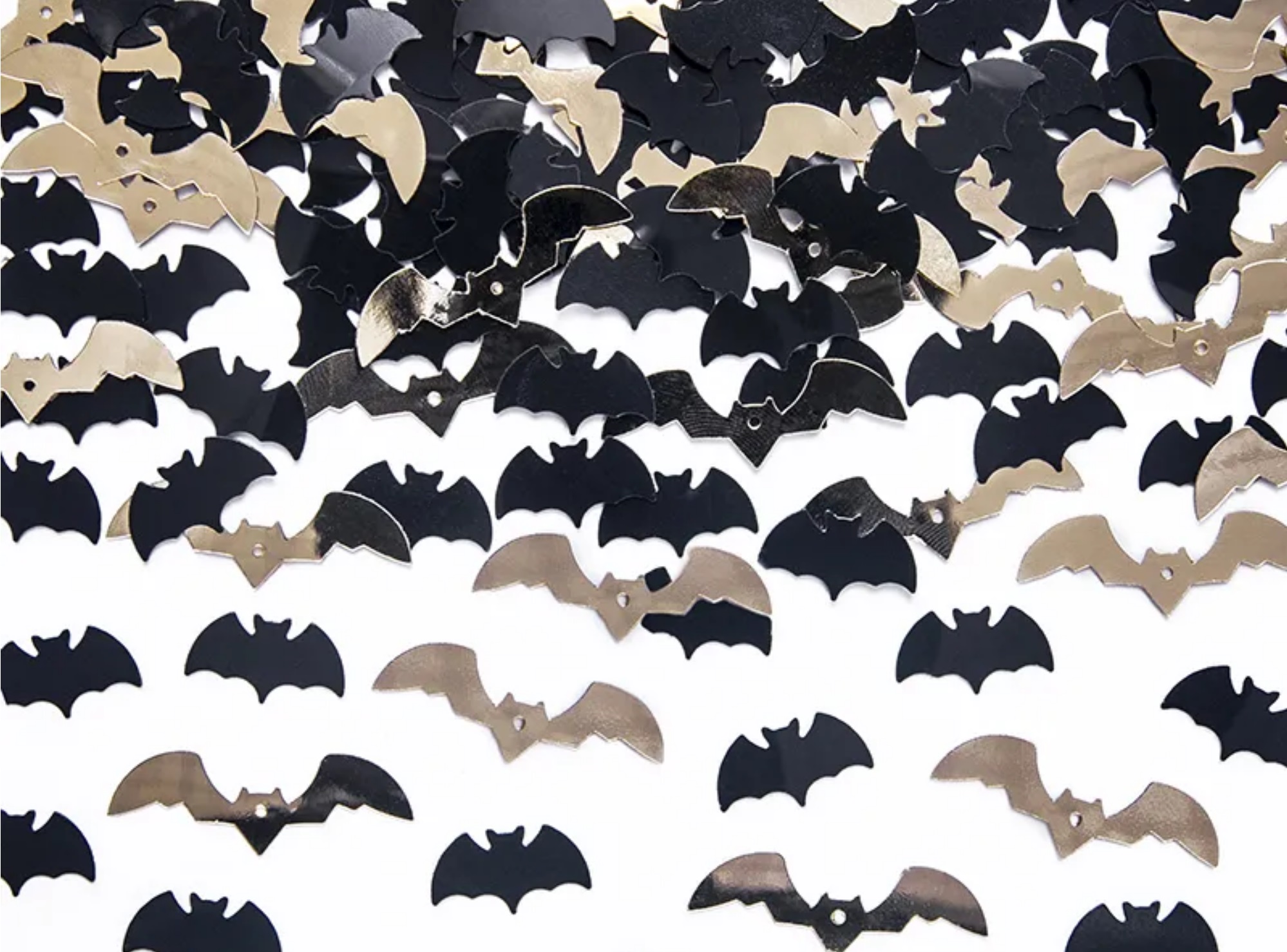 Confetti Bats, black and gold, size 1.7x0.7 centimeters, 2.5x0.7 centimeters.