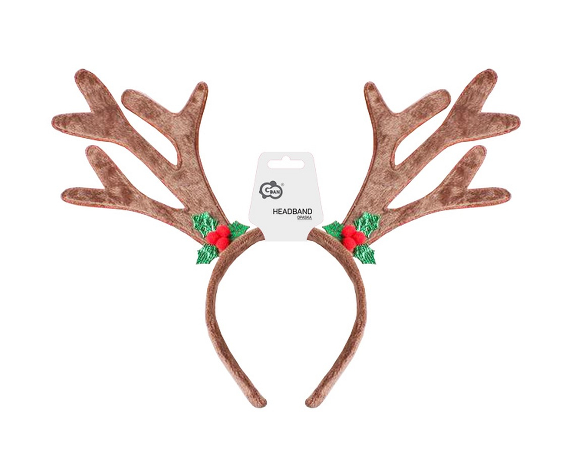 Cordeluța Coarne de Ren maro cu decor de Crăciun de la Godan este un accesoriu festiv, universal și de sezon, decorat cu coarne de ren impresionante și frunze de illex cu fructe roșii, realizată din poliester și potrivită pentru adulți și copii, fiind ideală pentru evenimente festive, piese de teatru, petreceri, decorarea mediilor de lucru sau ca accent vizual amuzant pentru a aduce magia și atmosfera sărbătorilor în orice ținută.