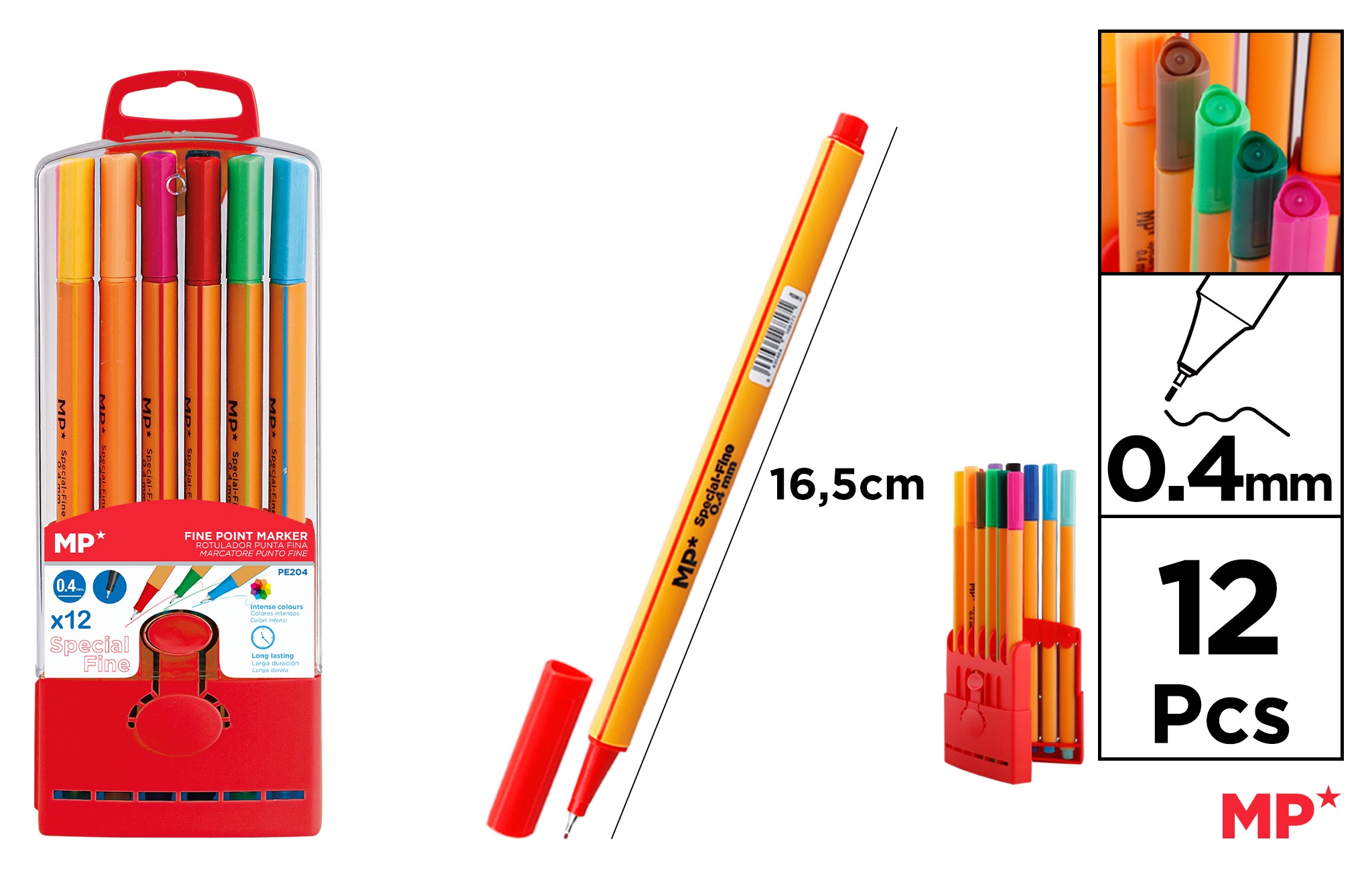 Fine tip marker. For high-precision drawings, writing,sketches or designs. Vivid and resistant colours.0.4mm fine acetate tip. Rigid plastic caseof12 assorted colours.