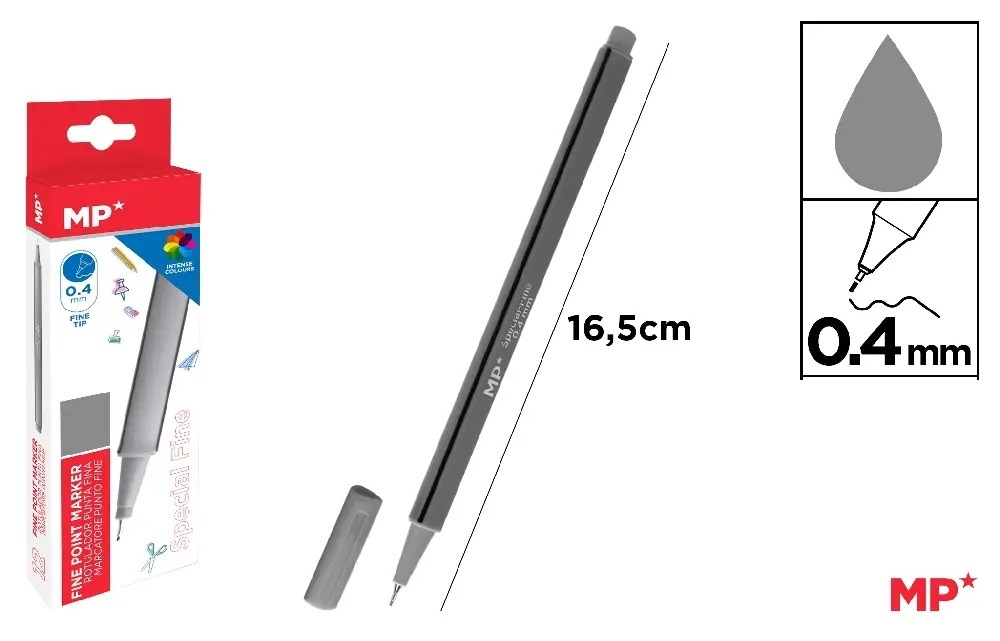 Fineliner cu vârf de 0.4 mm, ideal pentru notițe, schițe și desene detaliate. Culoarea argintie adaugă un aspect elegant și rafinat în orice proiect artistic. Forma ergonomică triunghiulară asigură o priză confortabilă și precisă în mână, facilitând utilizarea fără efort. Zonele anti-alunecare GRIP îmbunătățesc confortul și controlul în timpul utilizării.