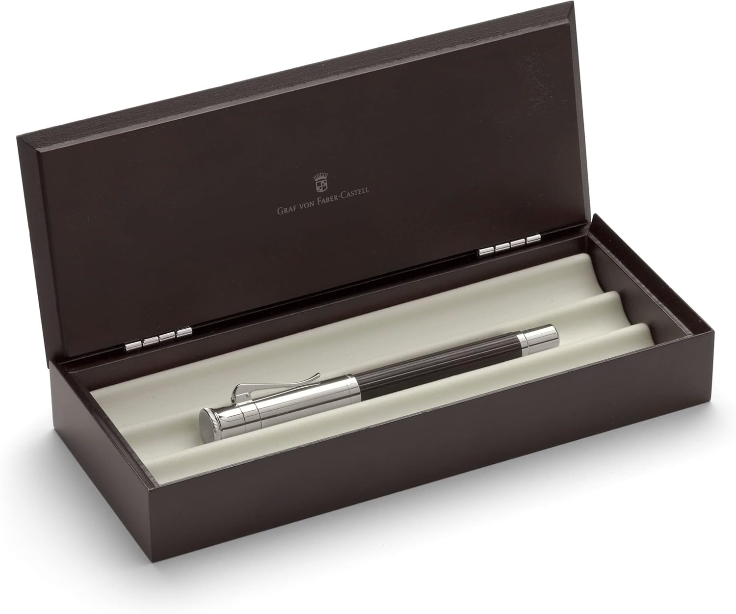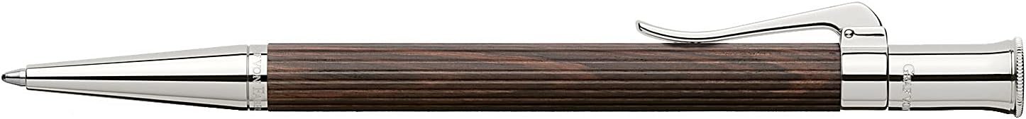 Colecția Classic de la Graf von Faber-Castell combină farmecul materialelor naturale cu precizia metalelor nobile. Acest pix de excepție este realizat din lemn de Grenadill (lemn negru african), una dintre cele mai dure și rezistente specii de lemn din lume, utilizată adesea în fabricarea instrumentelor muzicale de suflat. Contrastul dintre nuanța profundă de maro închis a corpului canelat și strălucirea argintie a elementelor placate cu platină transformă acest pix într-un simbol al prestigiului și al bunului gust.
