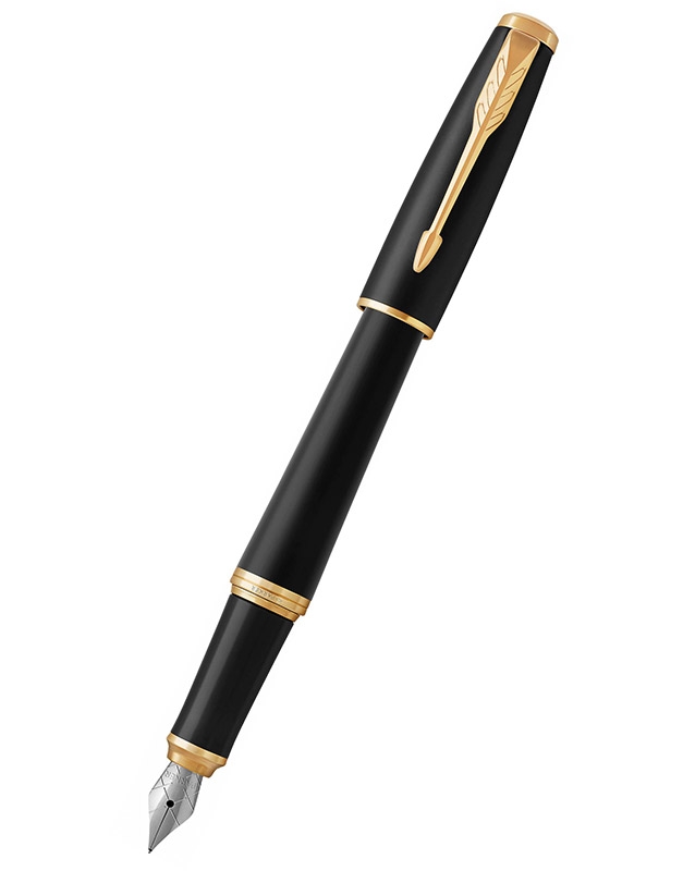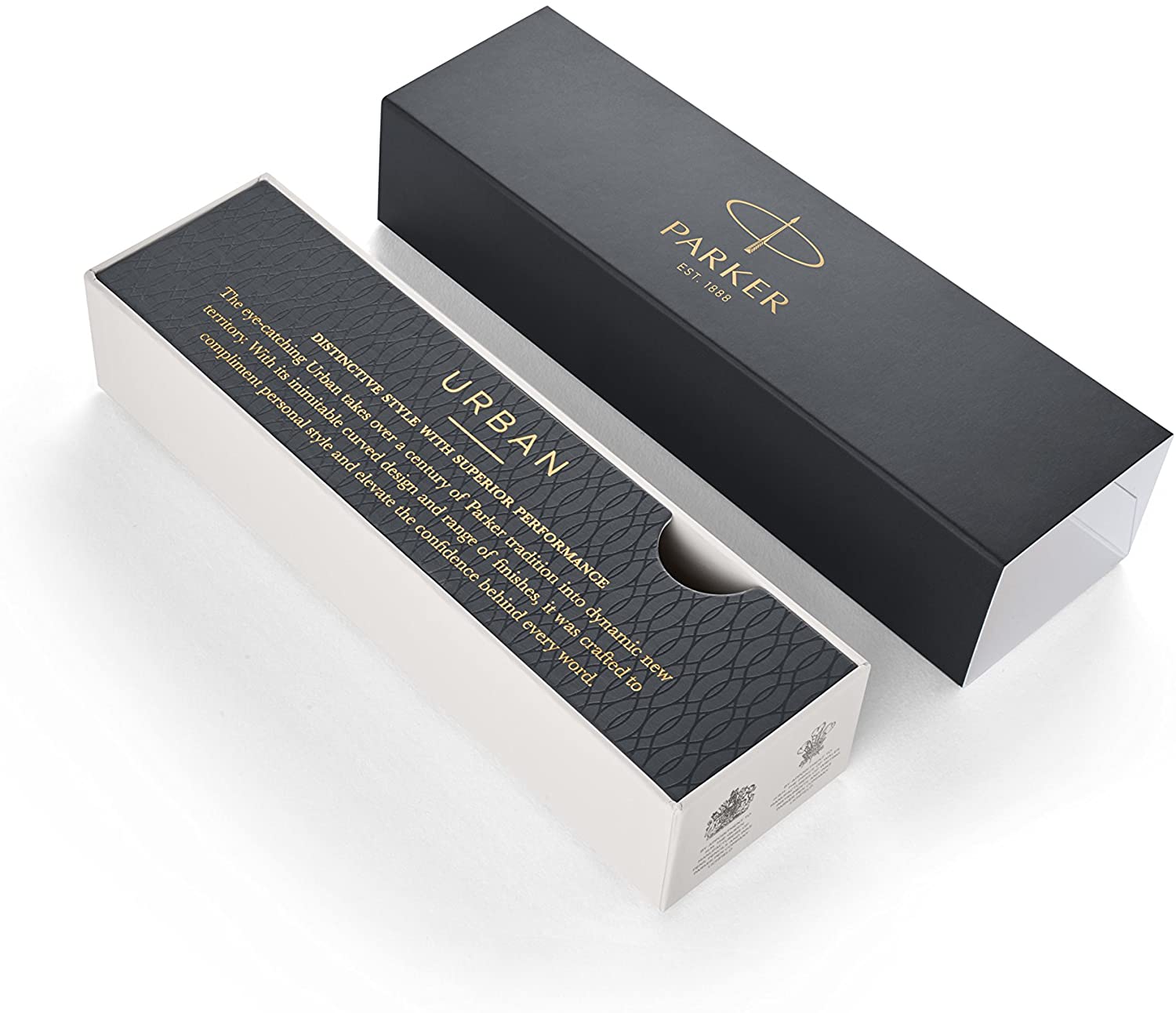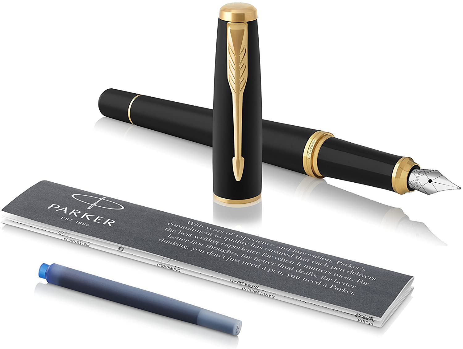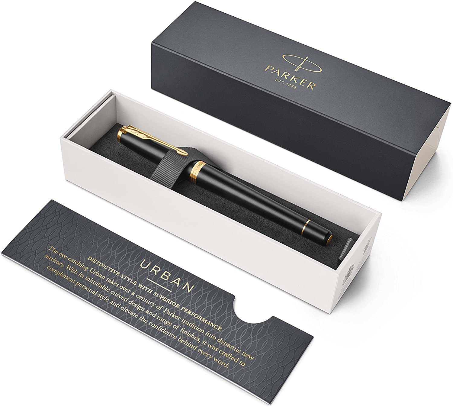 Parker Urban Fountain Pen, Muted Black with Gold Trim, Fine Nib with Blue Ink Refill (1931593)