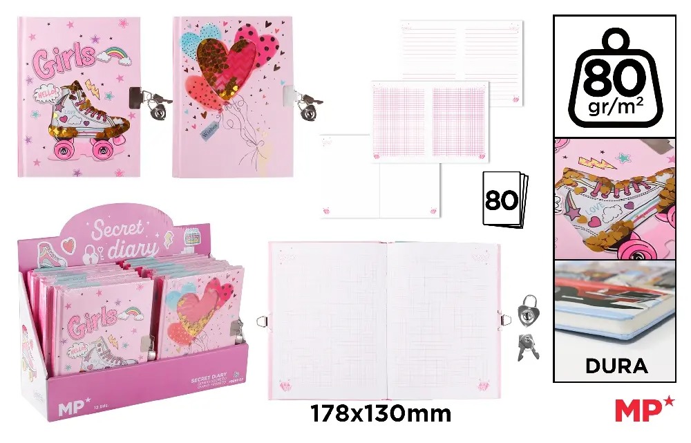 Jurnal cu Lacăt IPB 178*130mm 80F Cervantes Girls PB891-02