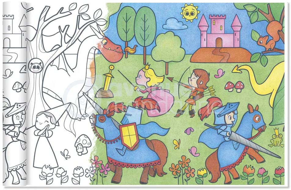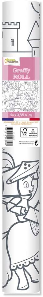 Avenue Mandarine GY080C - O rolă Graffy de 5mx35cm constând dintr-o foaie de poster de 90g preimprimată cu un desen de 50cm repetat de 10 ori, Prințese și Cavaleri