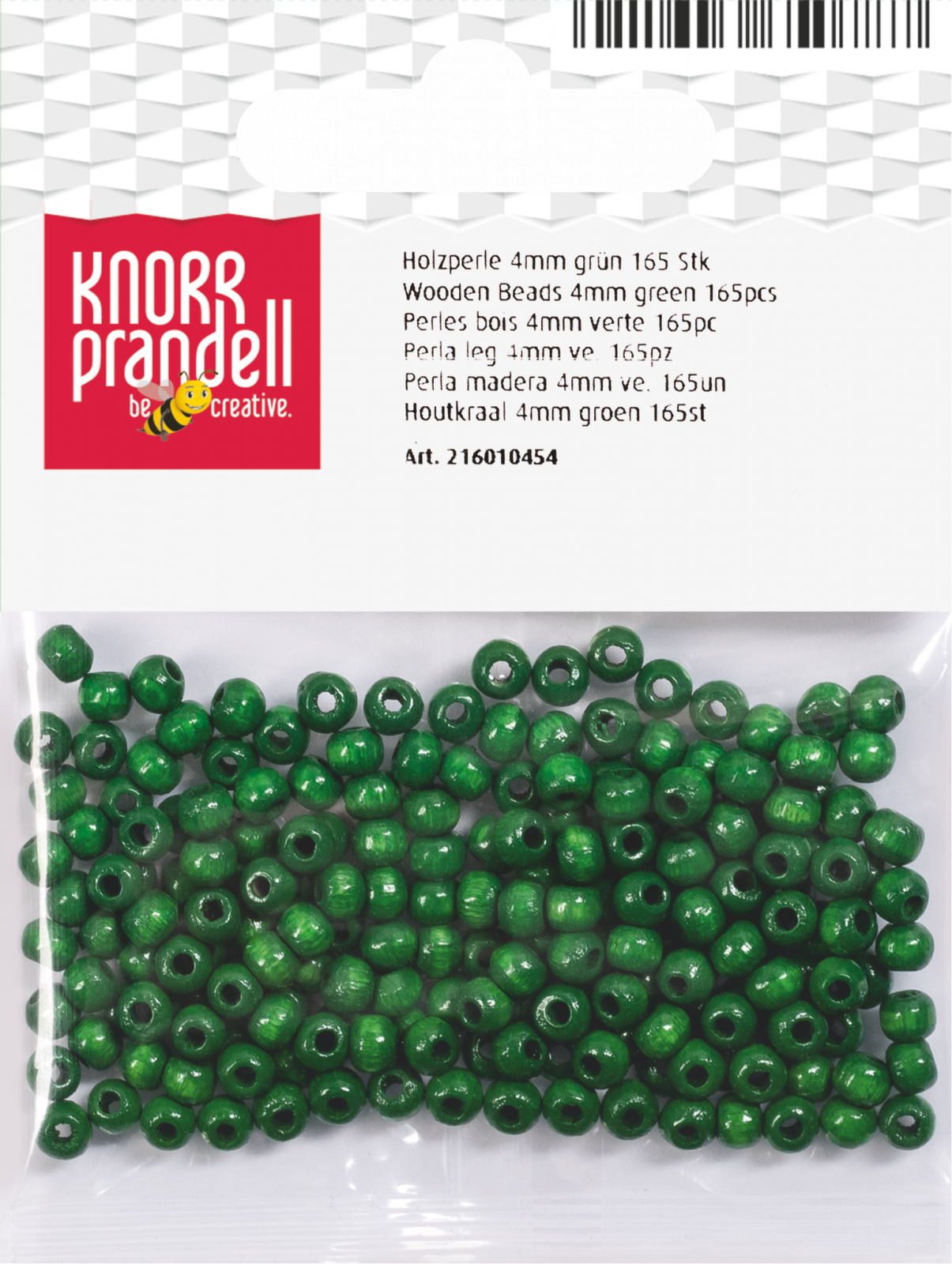 Setul KP MARGELE LEMN 4MM 165/SET VERDE de la KNORR prandell include 165 mărgele rotunde din lemn de fag de culoare verde, cu diametrul de 4 mm și gaură de 1.5 mm, ideale pentru realizarea lanțurilor de suzetă și a altor accesorii pentru copii.