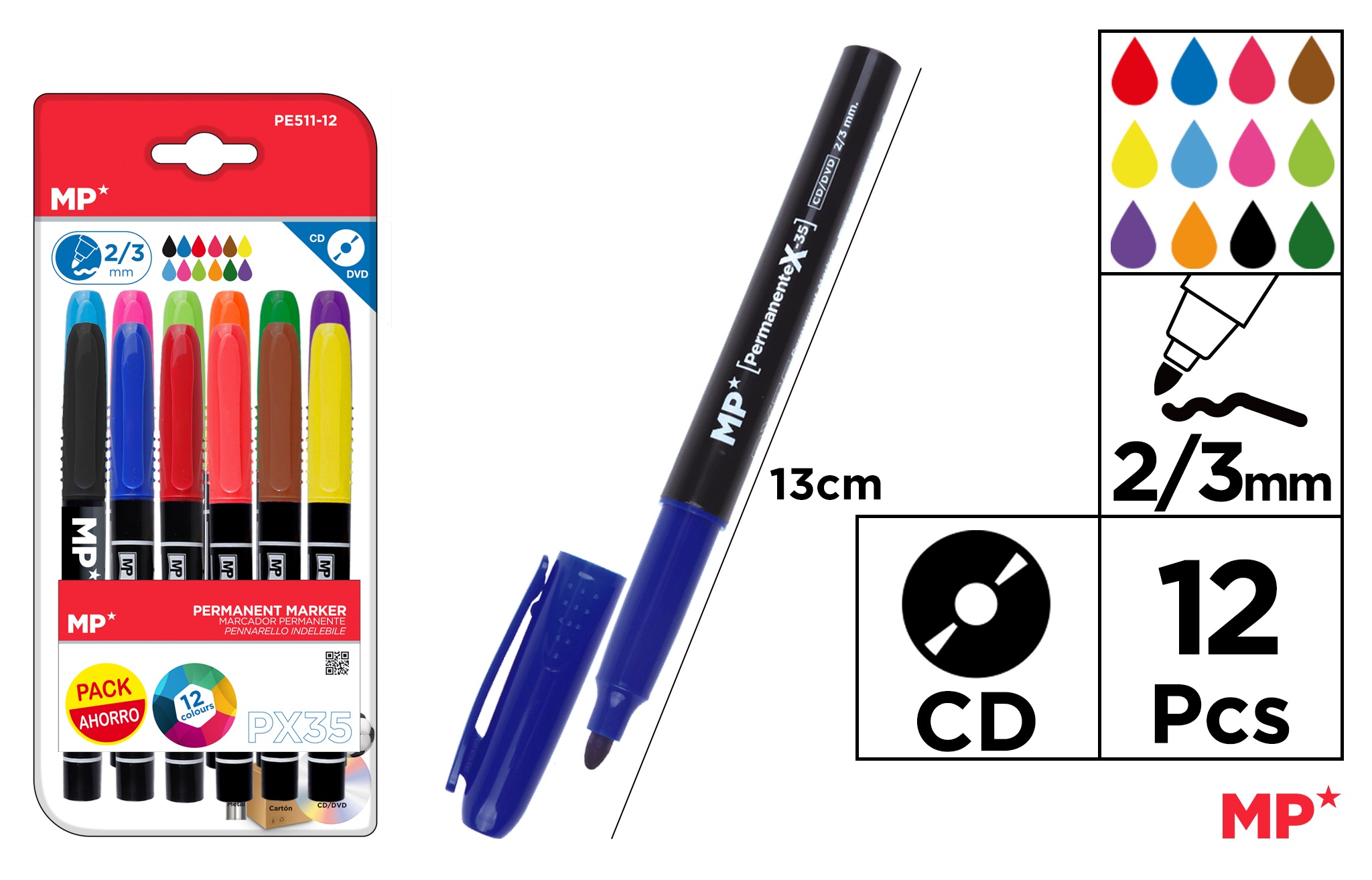 MARKER PERMANENT IPB PENTRU CD 12 CULORI/SET PE511-12