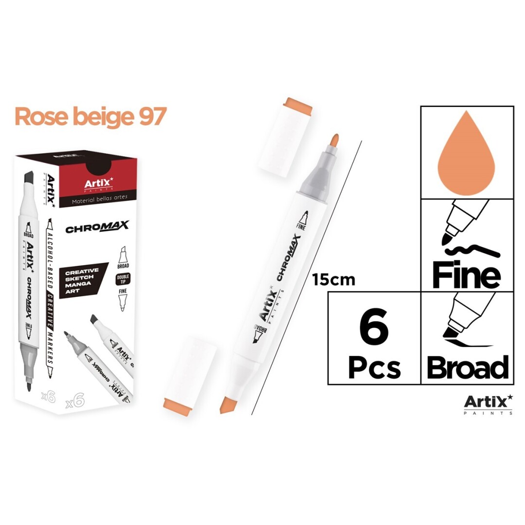 Creative marker with double tip and alcohol-basedink.Plastic body. 1 mm fine tip and 2-5 mm chiseltipfor precise lines. Ideal for making creativedrawings,sketches, manga, comics and any pencreation.Perfect for hobby artists, designers, andanycreative use. Wide range of colours to createanydesign.