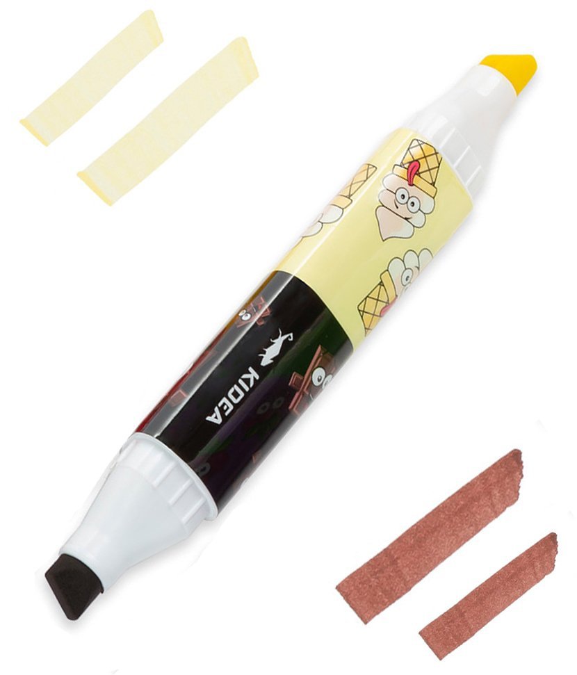 Markerul gigant cu două culori și parfum trebuie să fie în etuiul tău de creioane în acest an școlar. Acest marker îți va permite să creezi desene neobișnuite, cu culori intense, care miroase frumos și dulce! Fiecare vârf al markerului cu două culori are un miros diferit, dulce, de bomboane sau fructe preferate. Datorită dimensiunilor sale mai mari, markerul este extrem de practic. Vârful său practic îți permite să trasezi atât linii precise, cât și linii mai groase, ceea ce îl face ideal atât pentru desen, cât și pentru evidențierea notelor importante. Transformă-ți lucrările într-un festival de arome cu markerul parfumat cu două culori de la KIDEA!