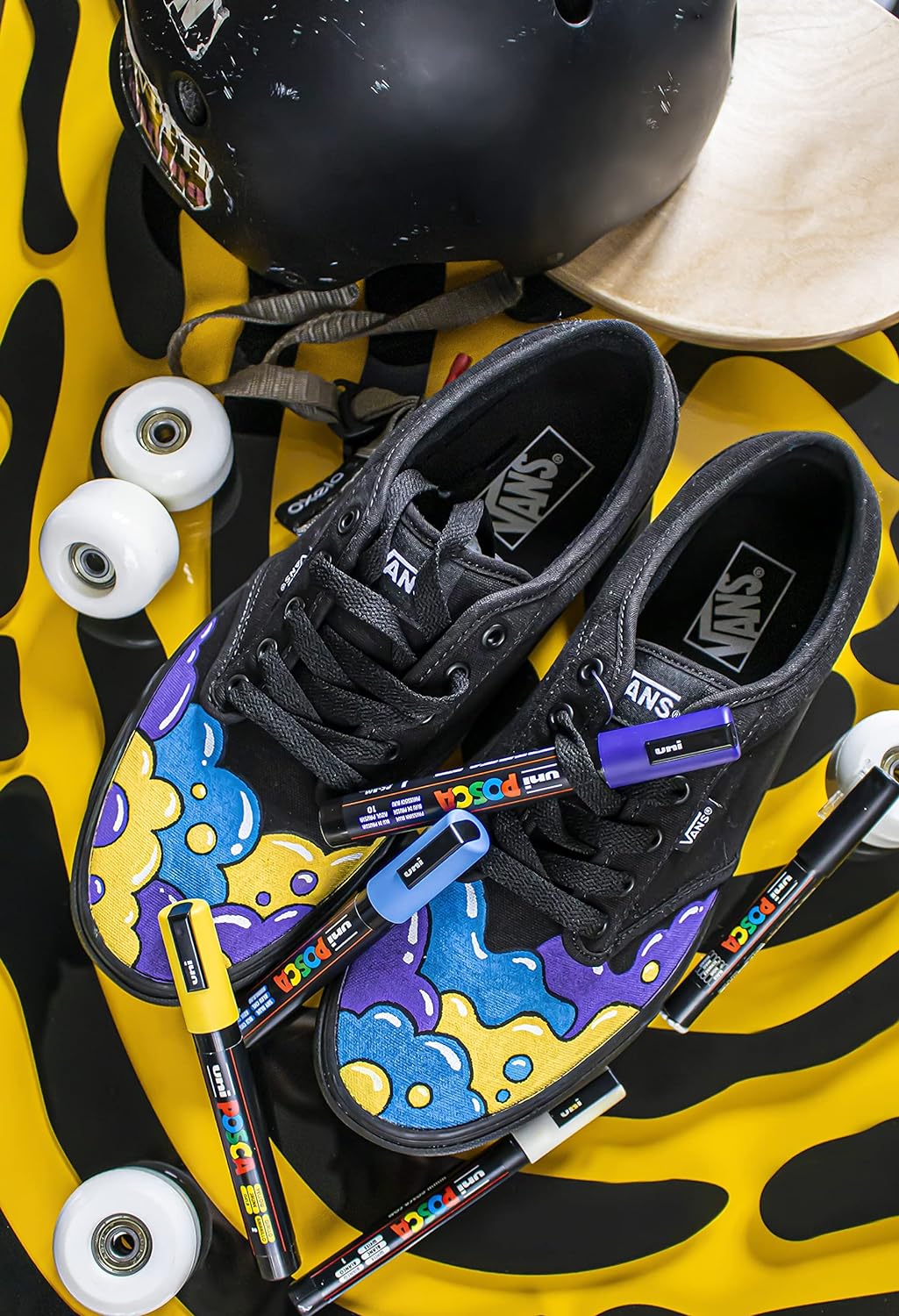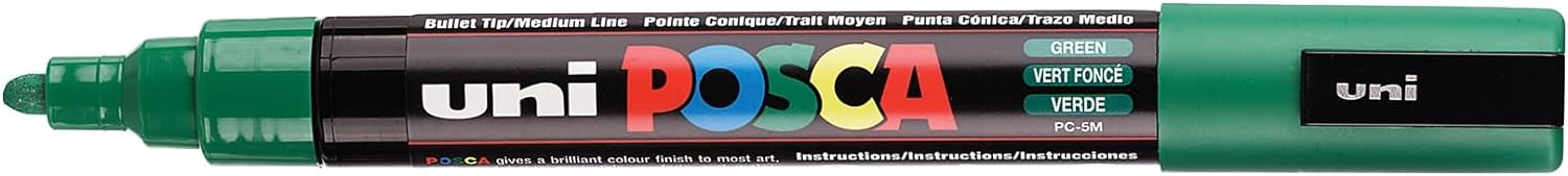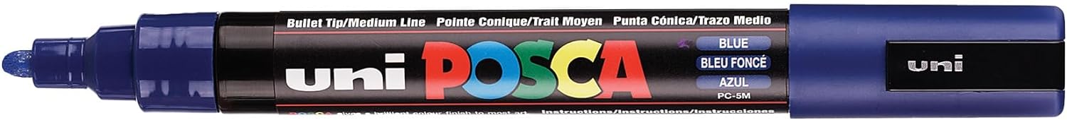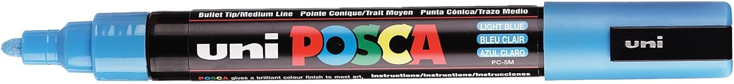 Acest set de markere Posca PC-5MC conține opt markere Fine Point, serie PC-5MC, în culori de bază. Markerele cu vopsea acrilică Uni Posca utilizează o cerneală intensă, opacă, care poate fi aplicată pe aproape orice suprafață, inclusiv hârtie, fotografii, sticlă, lemn, plastic și metal. Vopseaua acestor markere acrilice poate fi ștersă de pe suprafețele netede precum sticla sau porțelanul, dar aderă permanent la suprafețele poroase precum hârtia.
