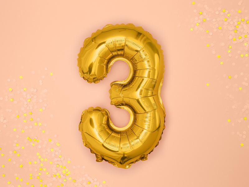 BALON FOLIE ALUMINIU NUMBER "3", 35CM, GOLD FB10M-3-019