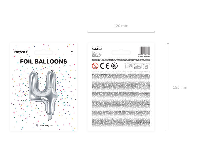 BALON FOLIE ALUMINIU NUMBER "4", 35CM, SILVER FB10M-4-018