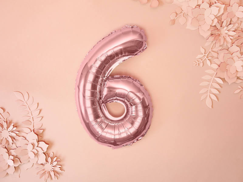 Metallic foil balloon Number "6", rose gold, size approx. 35 cm (14").