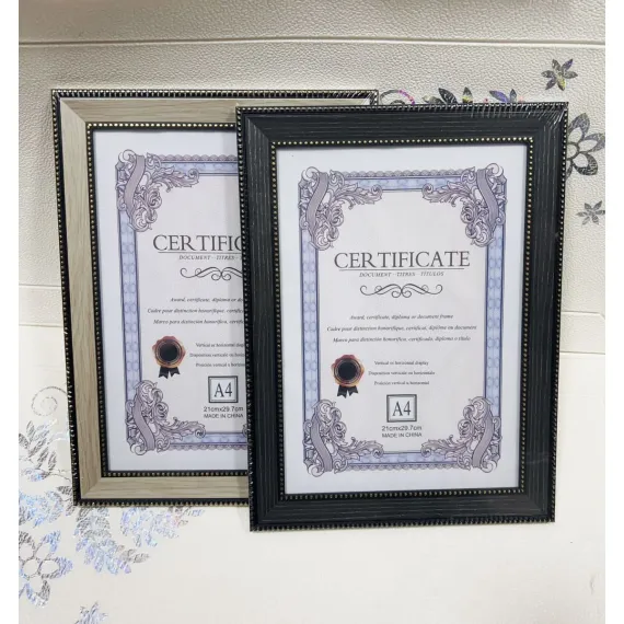 Rama este proiectată pentru formatul standard A4 (21 x 29.7 cm), ceea ce înseamnă că documentele pot fi introduse direct, fără a fi necesară decuparea sau ajustarea. Acest format este cel mai frecvent utilizat pentru diplome, certificate academice sau documente administrative.