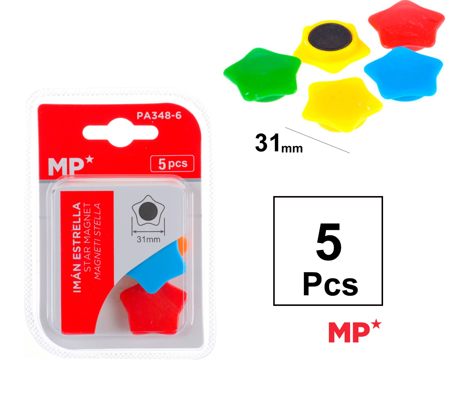 Magneți de fixare sau de semnalizare pentru table magnetice sau planuri. Forma de stea. Culori vii. 31 mm diametru.Cutie cu 5 unitati in blister.
