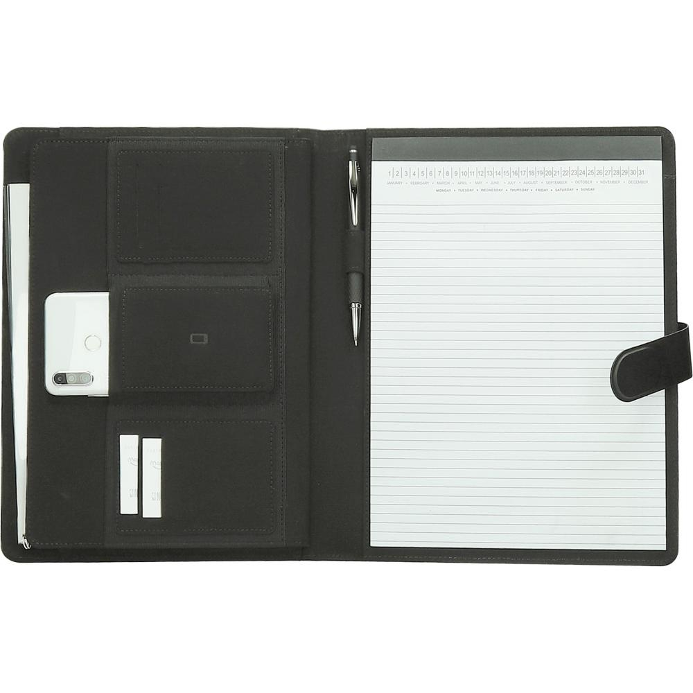 🗂️ Dispune de o inserție pentru caiet liniat de 20 de coli, plus buzunare interioare pentru telefon, cărți de vizită și documente, asigurând organizare impecabilă
