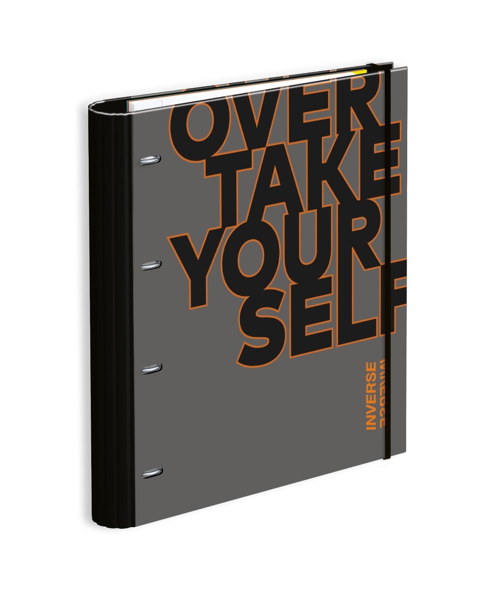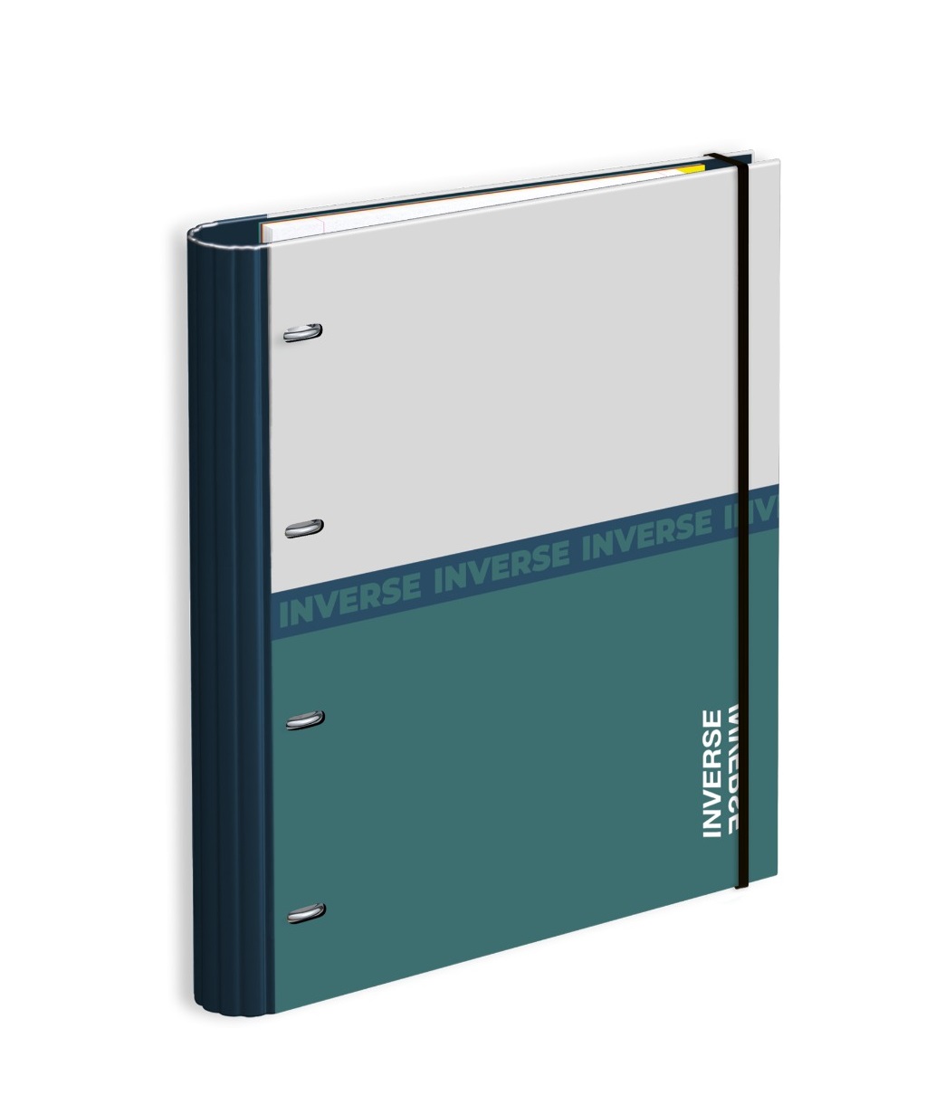 Caiet mecanic cu inele model Katy in dimensiune A4. Are inchidere elastica din cauciuc, si 4 inele D, 35 mm.