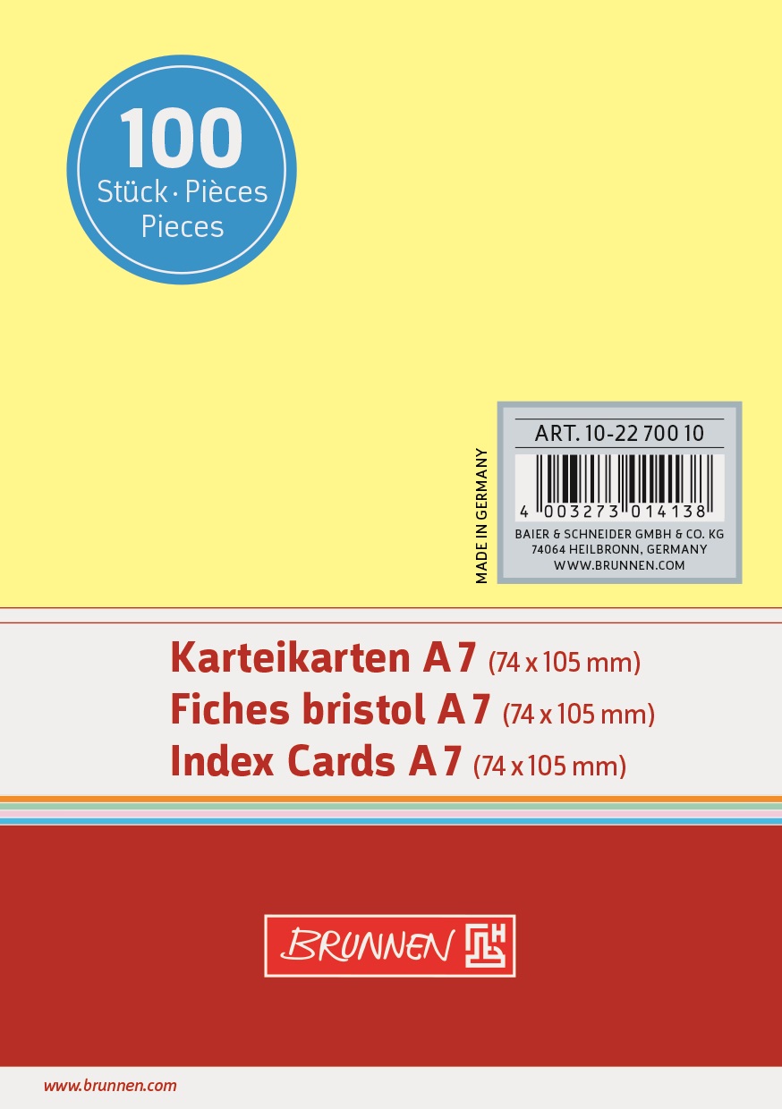 INDEX CARD A7 100/SET VE 2270010 GALBEN