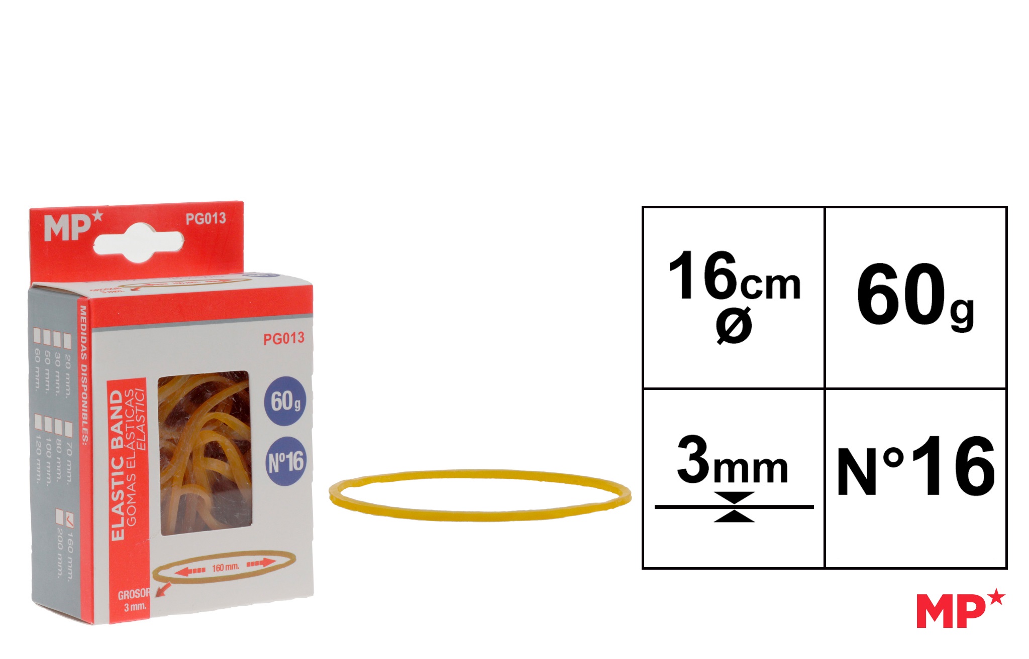 Benzi elastice de înaltă rezistență. Elasticitate mare.Nr.16. Dimensiuni: 3 x 160 mm. cutie de 60 g.